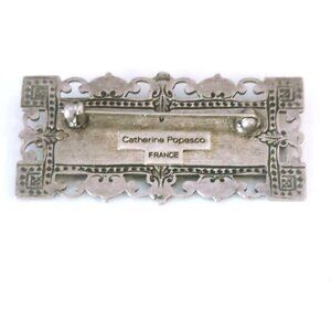 Vintage Catherine Popesco Rectangular Silver Tone Green Brooch Art Deco Nouveau. Condition is preowned. Approximately 2 inches long (FC03)