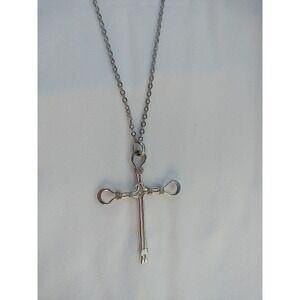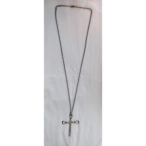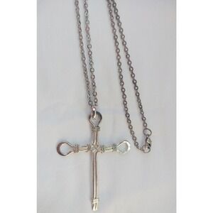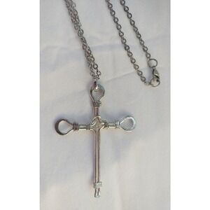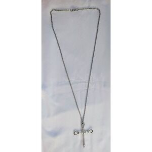 Vintage Catholic Cross Pendant Necklace Christian Religious Jewelry Silver Tone