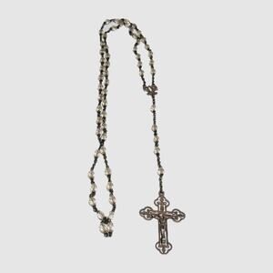 Beautiful older mid 1900's Sterling Rosary Bead necklace with a filigree cut cross. Glass beads. Came from a large Estate home. Natural patina, has not been cleaned. This is sure to sparkle with cleaning.