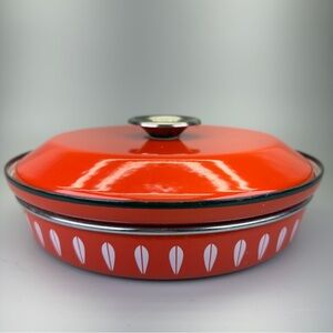 There’s a ding on the lid and some chipping on black enamel band around top of skillet as shown in photos