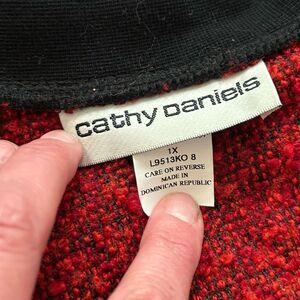 Vintage Cathy Daniels Red Embroidered Top Floral Bouclé Faux Cardigan 1X–2X NWOT