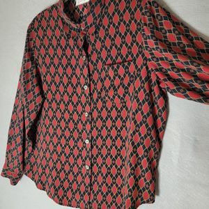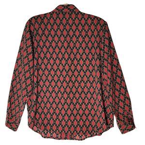 Cathy Che Vintage Blouse 1X Button Front Shoulder Pads Long Sleeve Red Blue. Excellent pre-owned condition with no flaws.