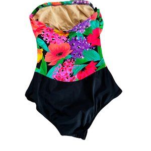 Vintage Catilina Floral Strapless One Piece Swimsuit USA