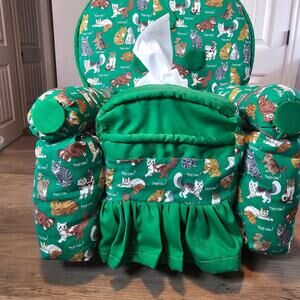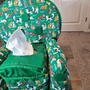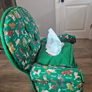 Vintage Cats Handmade Couch Tissue Box Cover Kitty 90s Cottage Retro Granny