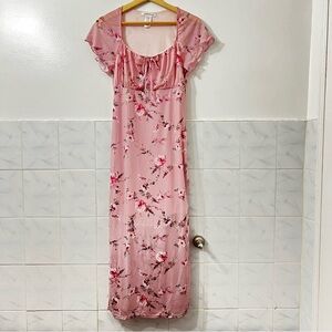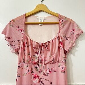 Vintage Caution To The Wind M Pink Floral Babydoll Flutter Sleeve Y2K Midi Dress