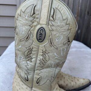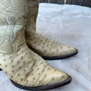 Vintage Cava Cream Cowboy Boots with Ostrich leather Size US 8