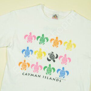 Vintage Cayman Islands T Shirt Mens M White Turtle Print Single Stitch 90s