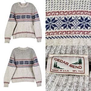 Vintage Cedar Bend Sweater Wool Knit Crewneck Beige Nordic Knit Winter Size XL