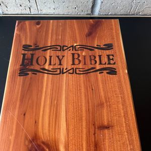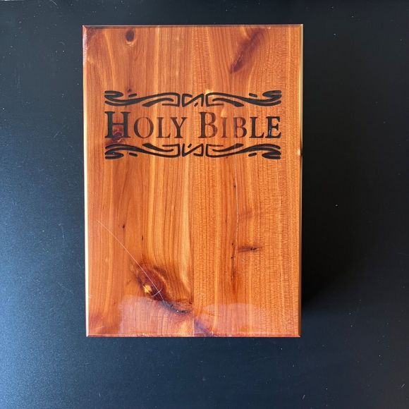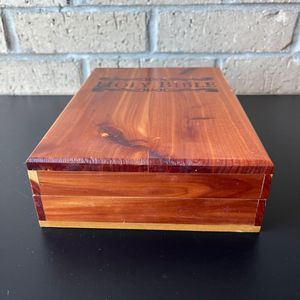 Vintage Cedar Polished Wood Holy Bible Empty Storage Box 6.5" X 9.5"