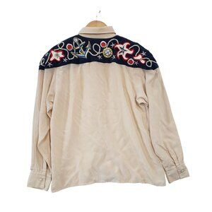 Vintage Cedars Western Silk Blouse Embroidered Leather Patches Size 8 Glam Rodeo