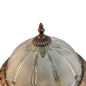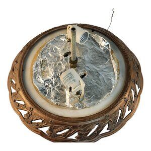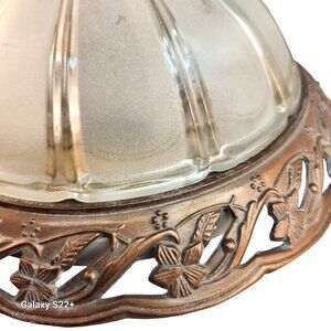 Vintage Ceiling Light Fixture Frosted Glass & Brass Dome With Floral Design 13 i