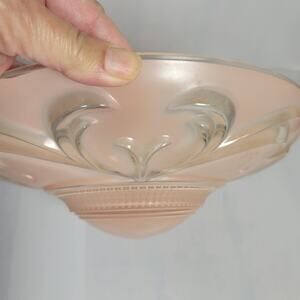Vintage Ceiling Light Fixture, Pink Round Light Globe, 3 Chain Art Deco
