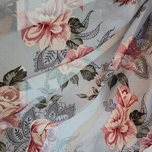 Vintage Cejon Scarf Blue Floral Flowers Roses Soft 62 X 13 Boho
