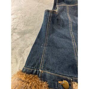 Vintage Cejon Vest Women's Large blue Denim Vest With Rabbit Fur Trim & Collar