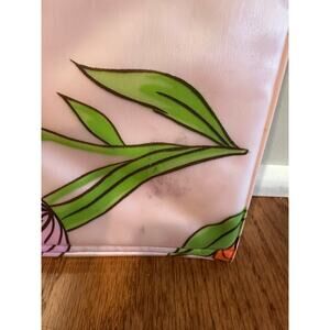 Vintage folding hosiery organizer by Celebrity, from the 1960s. Pink floral with ivory ribbon ties. Unfolds to 6 pockets. Some markings on the exterior and interior but overall in good vintage condition. Measures 12 x 5 inches when folded, and 12 x 14.5 inches when unfolded. Could be used for hosiery, gloves, hankies, etc. Cute!