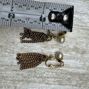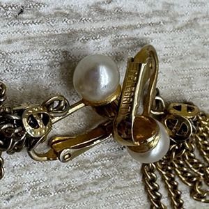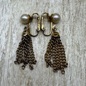 Vintage Celebrity Signed Gold And Silver Tone Tassel Dangle Clip On Earrings