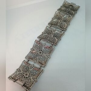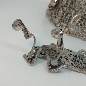 * Vintage Celebrity Silver Tone Panel Bracelet & Clip On Earrings Set