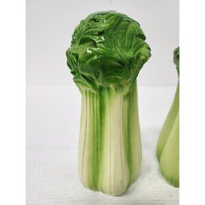 Vintage Celery Stalk Salt And Pepper Shaker Set Porcelain Green 6" Made In Japan