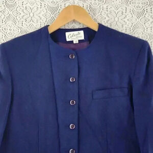 Vintage Celeste Sports Wool Made In U.S.A Navy Blue Button Blazer Women's 10