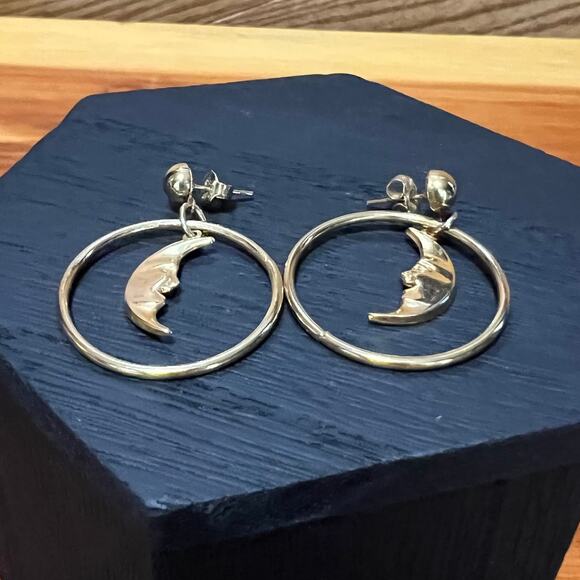 Vintage Celestial Man In The Moon Dangle Earrings Gold Tone Boho