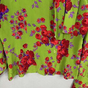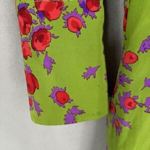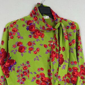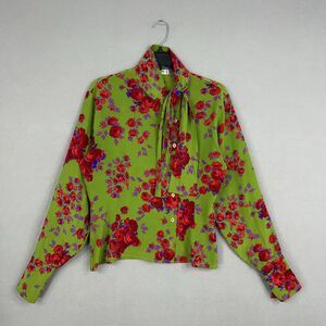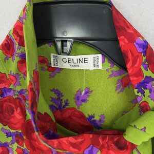 Vintage Celine Blouse Women Medium Green Red Floral Silk Scarf Tie France Luxury