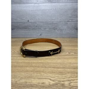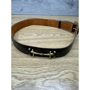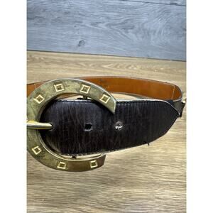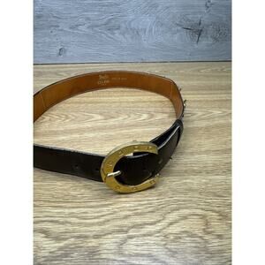 Vintage Celine Brown Leather Gold Buckle Waist Belt 30”