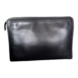 Vintage Celine Clutch Bag Leather Black Triomphe Pouch Purse. Condition is Pre-owned - Good. Shipped with USPS Ground Advantage.