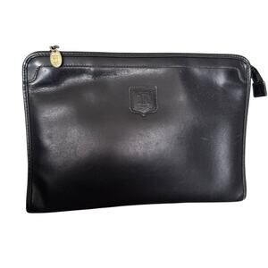 Vintage Celine Clutch Bag Leather Black Triomphe Pouch Purse