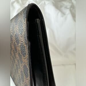 This vintage Celine long wallet features the iconic brown Macadam design in coated canvas. Measuring approximately 7"x3", it offers multiple compartments and a clean interior, making it a perfect blend of practicality and style. Ideal for organizing cash, cards, and other essentials in a compact, timeless format. A must-have for Celine enthusiasts or vintage designer collectors.