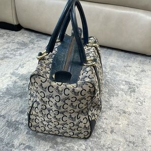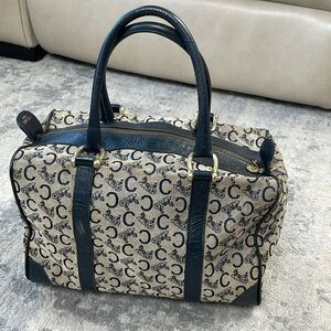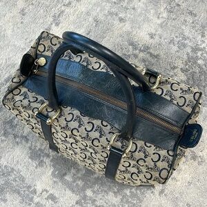 Vintage Celine Square Duffle Boston Bag Navy Blue Gray C Horse Carriage Macadam