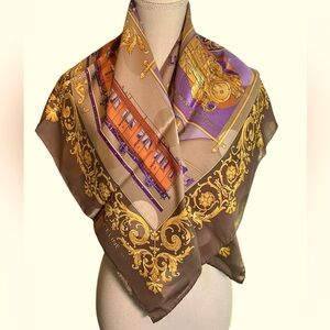 Vintage Celine Steam Locomotive Silk Scarf (t130)