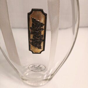 Very Beautiful And Unique Vintage Cellini Crystal Perfume Bottle Studio Porcelain Rose Stopper 8.5" Italy. 8 1/2" tall with stopper 7 1/2" tall without stopper. Silver plated floral plaque on front of bottle. Preowned But Not Used, Great Condition.