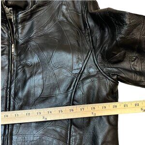 Vintage Cellini Long Full Grain Black Patchwork Leather Matrix Jacket Size XL