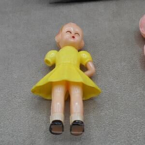 Vintage Celluloid Carnival Prize Toy Doll Lot: Girl in Yellow Dress & 2 Babies
