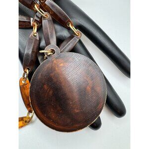 Vintage Celluloid Faux Tortoise Cameo Chain Link Pendant Necklace 34" Long