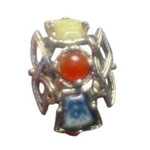 Vintage Celtic Carnelian and Agate Ring with Adjustable Shank Size 7