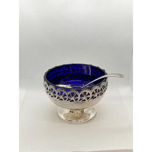 Vintage Celtic Quality Plate Cobalt Blue Glass Bowl Pedestal Candy Bowl England with spoon. Good condition. See pictures for more details.
