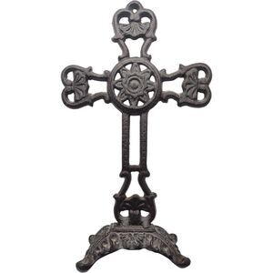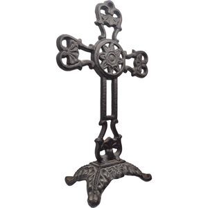 Vintage Celtic Sun Cast Iron Tabletop Cross Black Stand 10" Religious Christian
