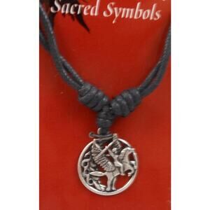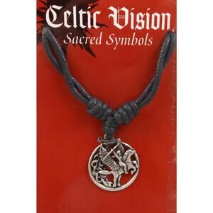 Vintage Celtic Vision Sacred Symbols Pegasus Necklace Pendant 24 Adjustable Cord