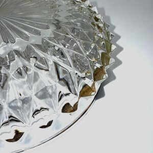 This product is a vintage Celtic cut crystal bowl with a silver plated rim, made in England in the 1950s or 1960s. The clear glass bowl features a Celtic cut style, adding a touch of elegance to any space. The craftsmanship and origin of this piece make it a unique and original antique piece for collectors or those looking to add a touch of vintage charm to their home.