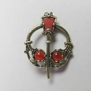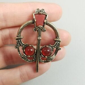 Vintage Celtic Style Red Cabochon Brooch, Kilt Shawl Scarf Lapel Pin, Estate