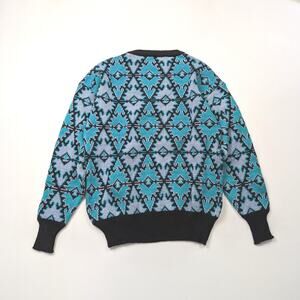 Vintage Center Aisle Sweater Adult Size Medium Blue Printed Geometric 80s Knit