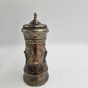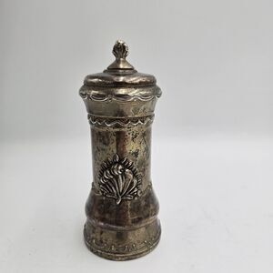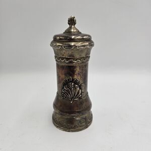 Godinger; GSA; silverplate; pepper mill; grinder; tabletop; kitchen; vintage; ornate; baroque; shell motif; collectible; dining; 5 inch.