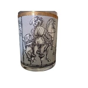 Vintage Cera 2 Camelot Gold Black White Knights and Horses Old Fashion Tumbler