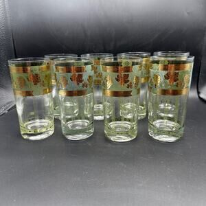 Vintage Cera Golden Grapes Highball Glasses Tumbler Tom Collins Set of 8