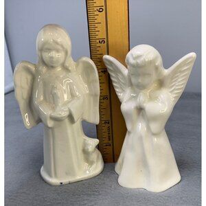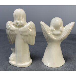 This charming set of vintage ceramic angel figurines exudes a timeless elegance, reminiscent of cherished heirlooms passed down through generations. Each figurine showcases delicate wings and serene expressions, making them ideal for holiday displays or year-round decor. The subtle white glaze finish enhances their ethereal appearance, adding a touch of grace to any setting.