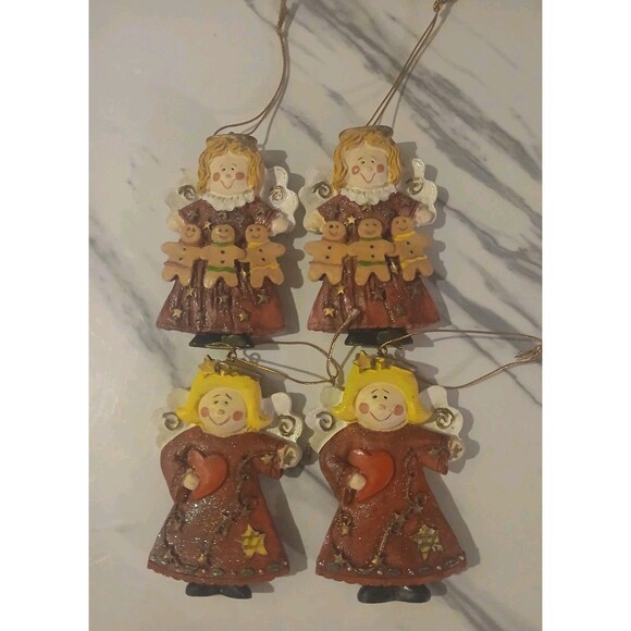 Vintage Ceramic Angel Tree Ornaments Set of 4 Rustic Country Cottage
