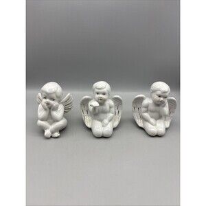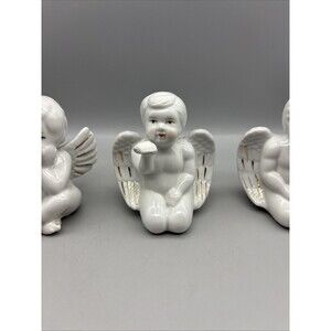 Vintage Ceramic Angels Set Of 3 White Glossy 4” Tall
