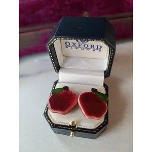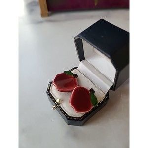 These are a vintage pair of handpainted red apple shaped ceramic stud earrings.