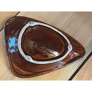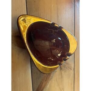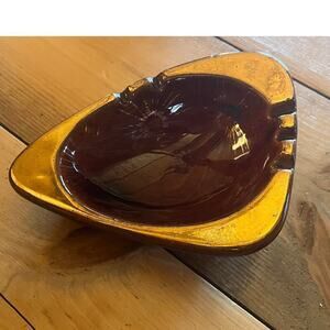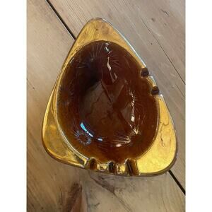 Vintage Ceramic Ashtray. MCM. Art Deco. Golds/Brown. marked USA. bar decor